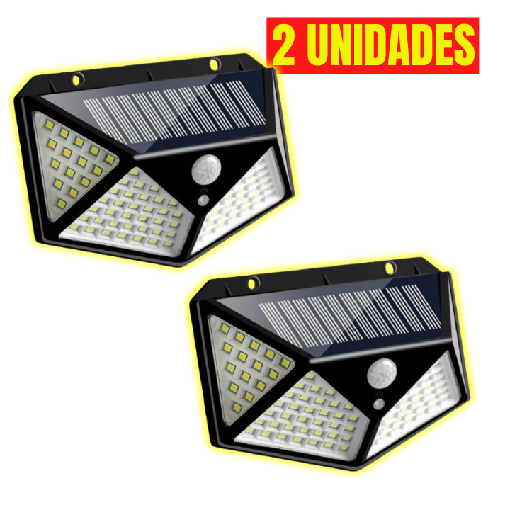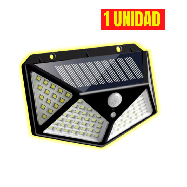 Lámpara solar de 100 leds distribuidos en frotis y laterales del producto para mejorar el ángulo de iluminación. Material del cuerpo ligero: PC + ABS Especificaciones del panel solar: Silicio monocristalino de 5.5V. Especificación de la batería: batería de litio 18650 3.7V 1800MAH con protección de carga y descarga.